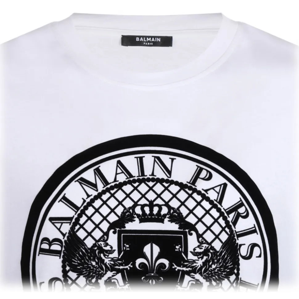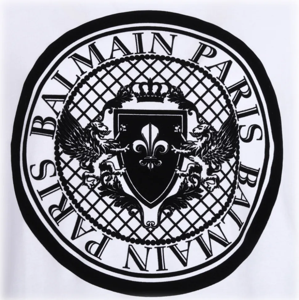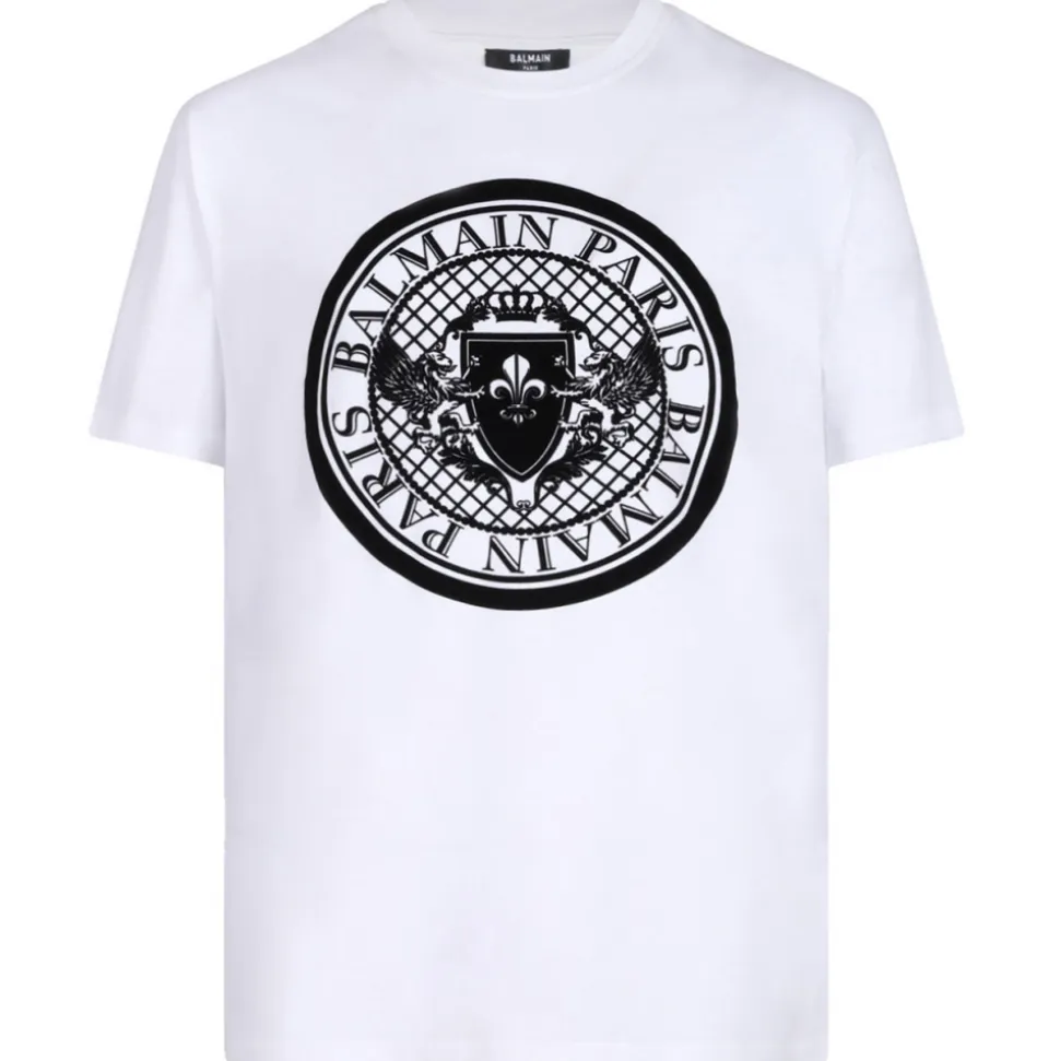 Balmain – Flocked Coin T-Shirt – White – Balmain Exclusive Luxury Collection