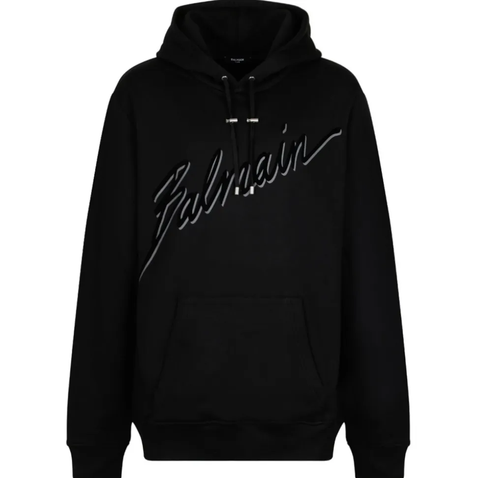 Balmain – Flocked Logo Hoodie – Black – Balmain Exclusive Luxury Collection