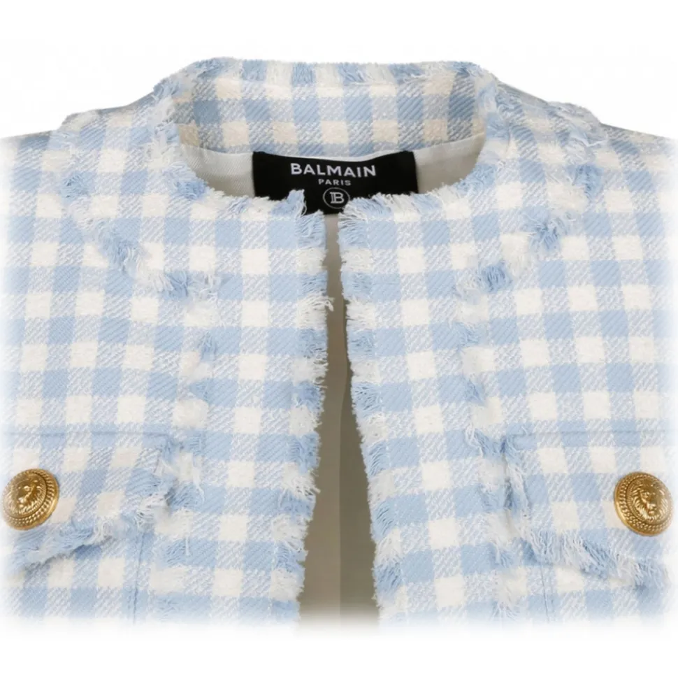 Balmain – Gingham Tweed Jacket – Blue – Balmain Exclusive Luxury Collection