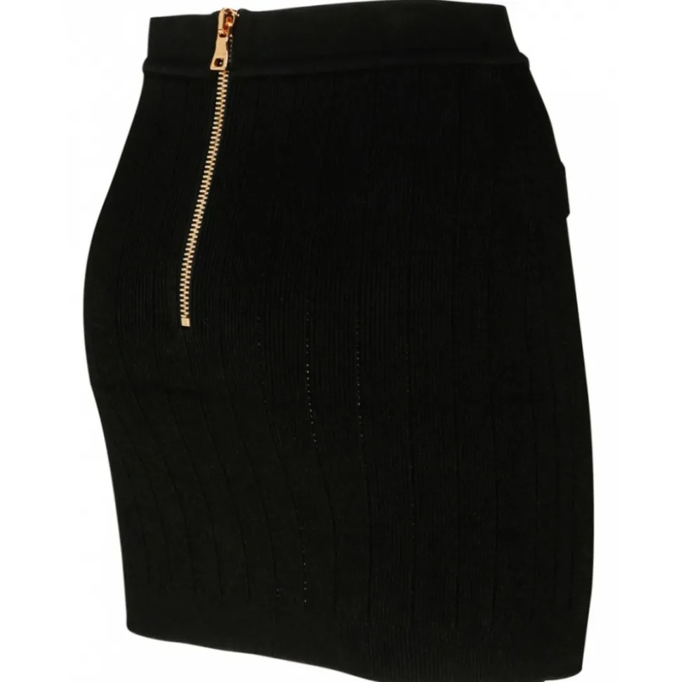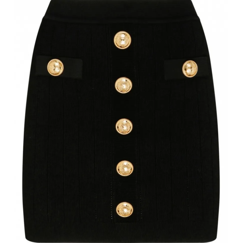 Balmain – Knitted Buttoned Mini Skirt – Black – Balmain Exclusive Luxury Collection