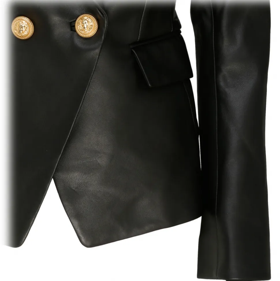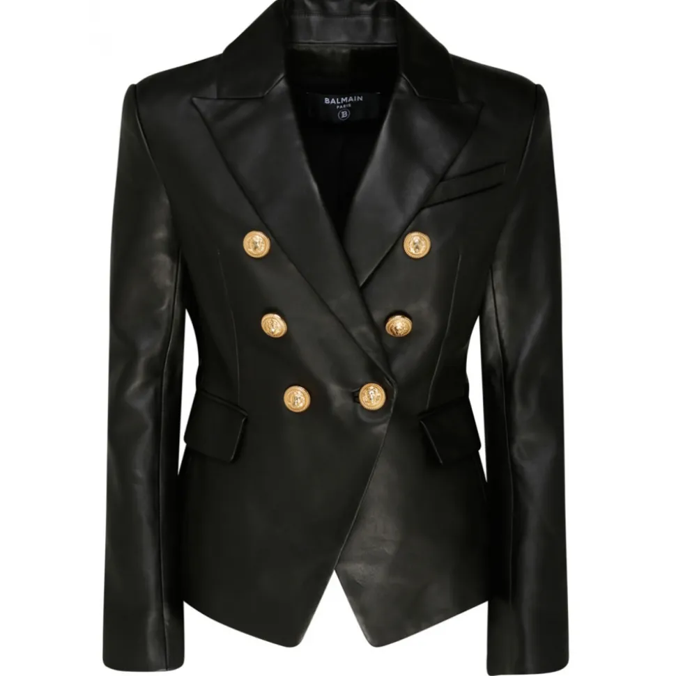 Balmain – Leather Double Breasted Blazer Jacket – Black – Balmain Exclusive Luxury Collection