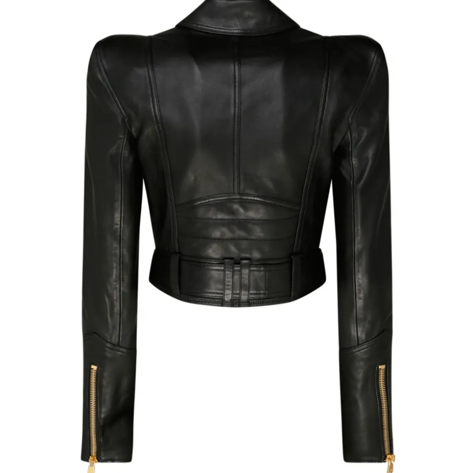 Balmain – Leather Perfecto Cropped Jacket – Black – Balmain Exclusive Luxury Collection