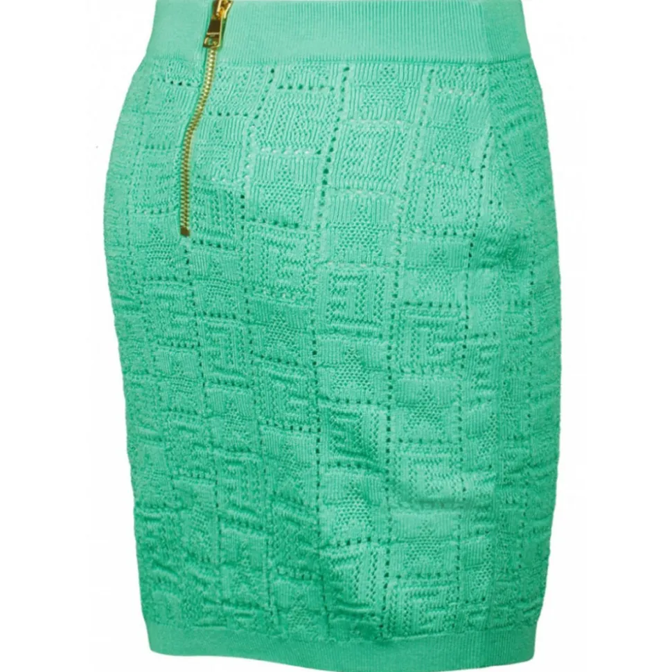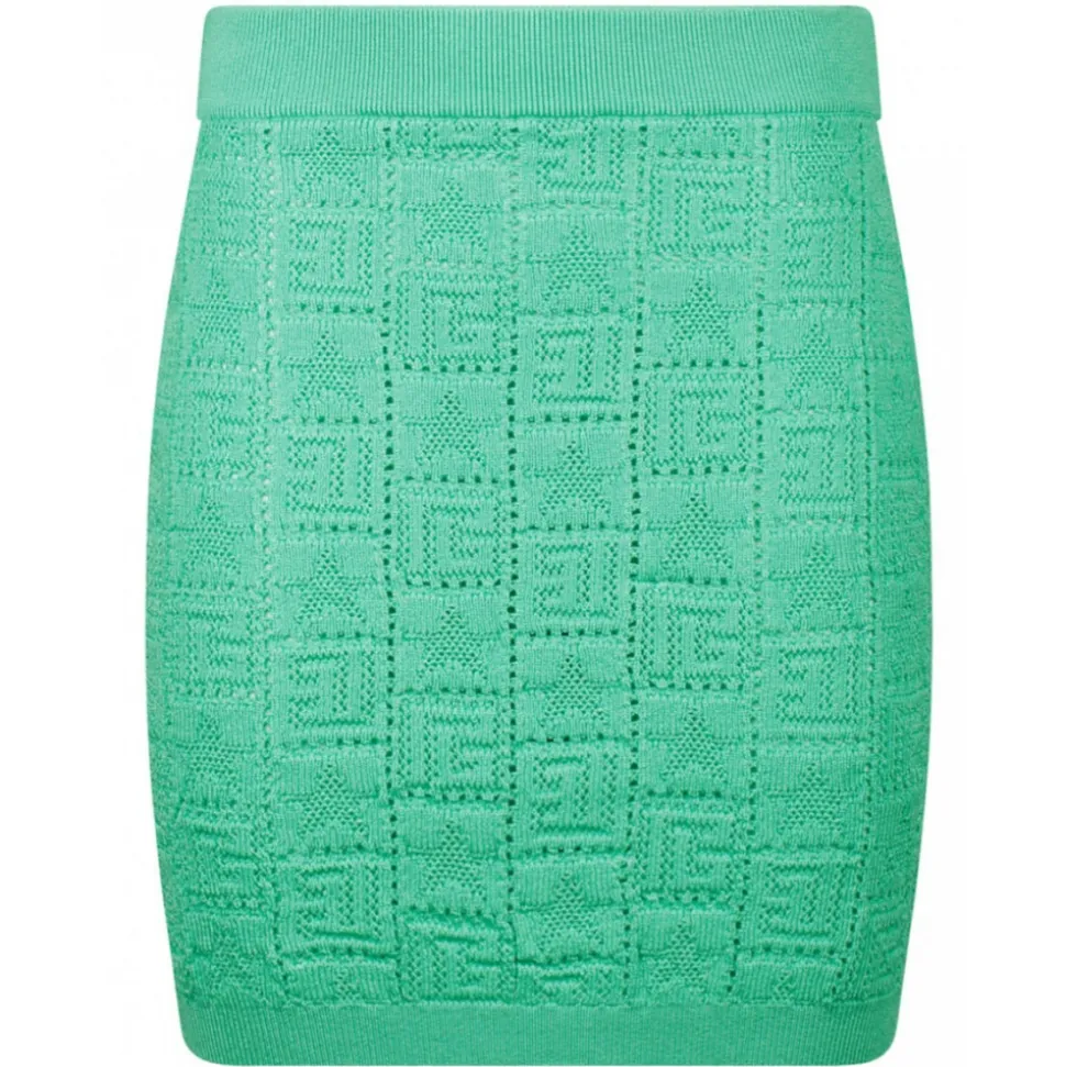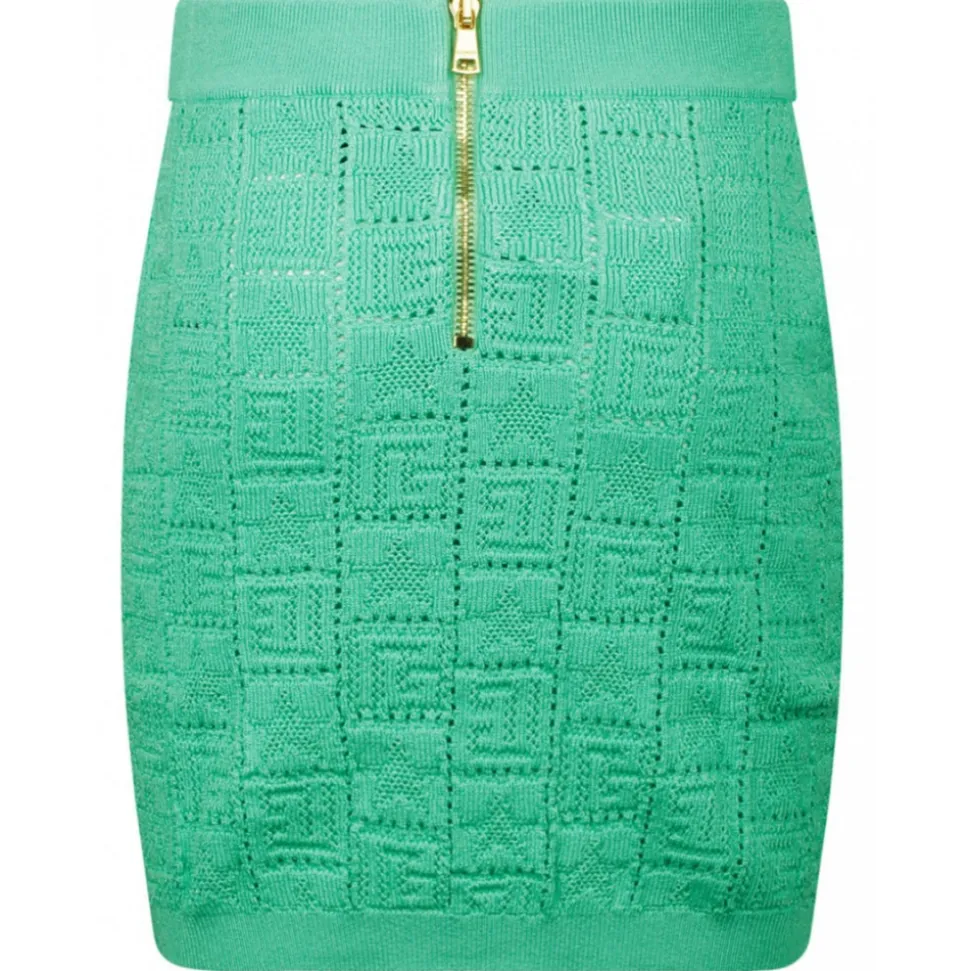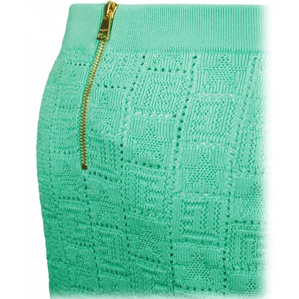 Balmain – Openwork Monogram Knit Skirt – Light Green – Balmain Exclusive Luxury Collection