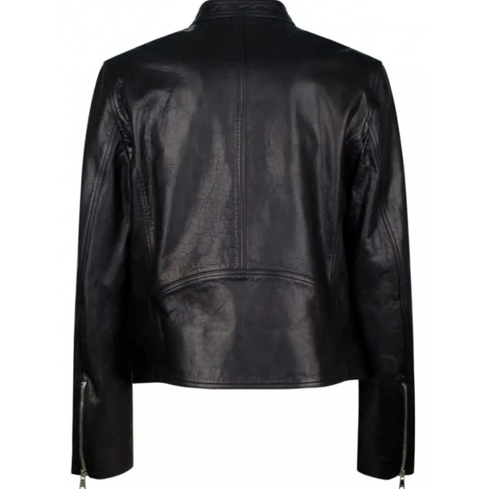 Balmain Black Polished Finish Jacket. Black polished finish jacket, band collar, front zip fastening, long sleeves.