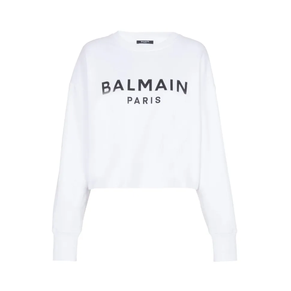 Balmain – Printed Bulky Cropped Sweatshirt – White Black – Balmain Exclusive Luxury Collection