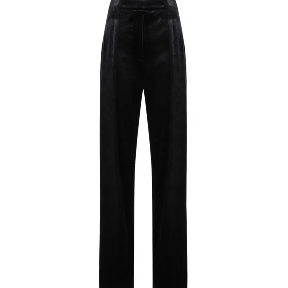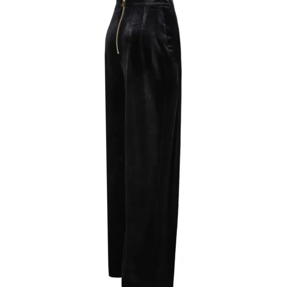 Balmain Black Velvet Trousers. Black velvet trousers, pleat detailing, rear zip fastening, slip pockets to the sides. High waisted, floor length.