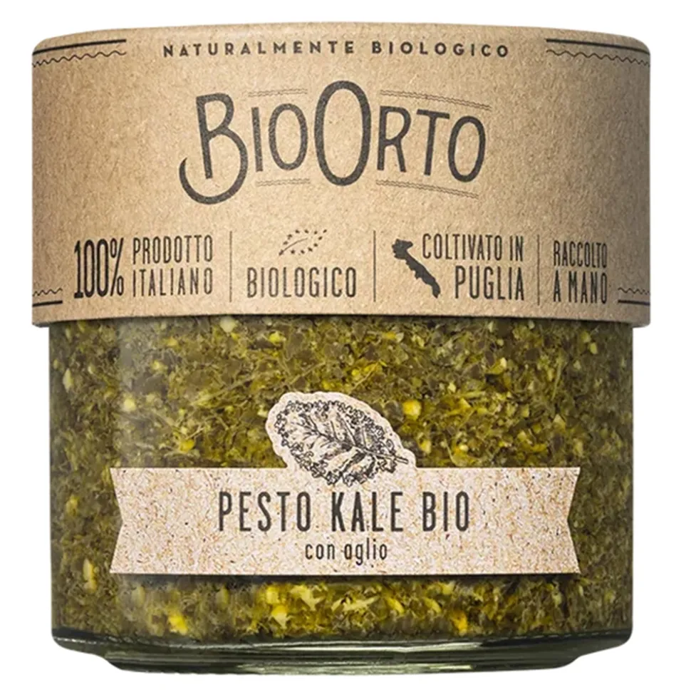 Ingredients: Organic kale (41%), Organic sunflower seed oil, Organic EVO oil, almonds*, salt, Organic pine nuts, in the version with garlic, Organic garlic (0.5%). Acidity regulator: lactic acid.