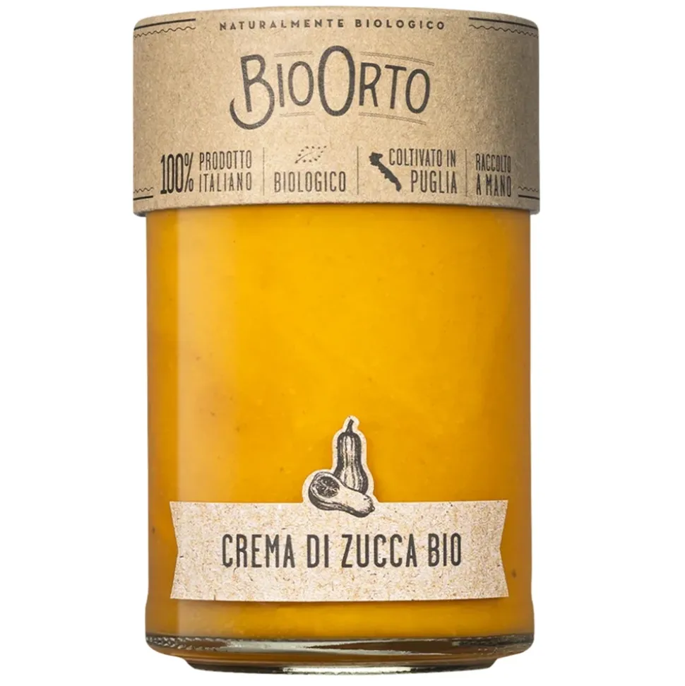 Grown in the company’s fields on the slopes of the Gargano, butternut squash, a low-calorie and fiber-rich vegetable, is harvested exclusively by hand and processed together with other fresh and genuine ingredients. The result? An organic pumpkin cream rich in flavor and of great quality. A product that enhances the flavors and aromas of fresh vegetables and is particularly versatile in the kitchen.