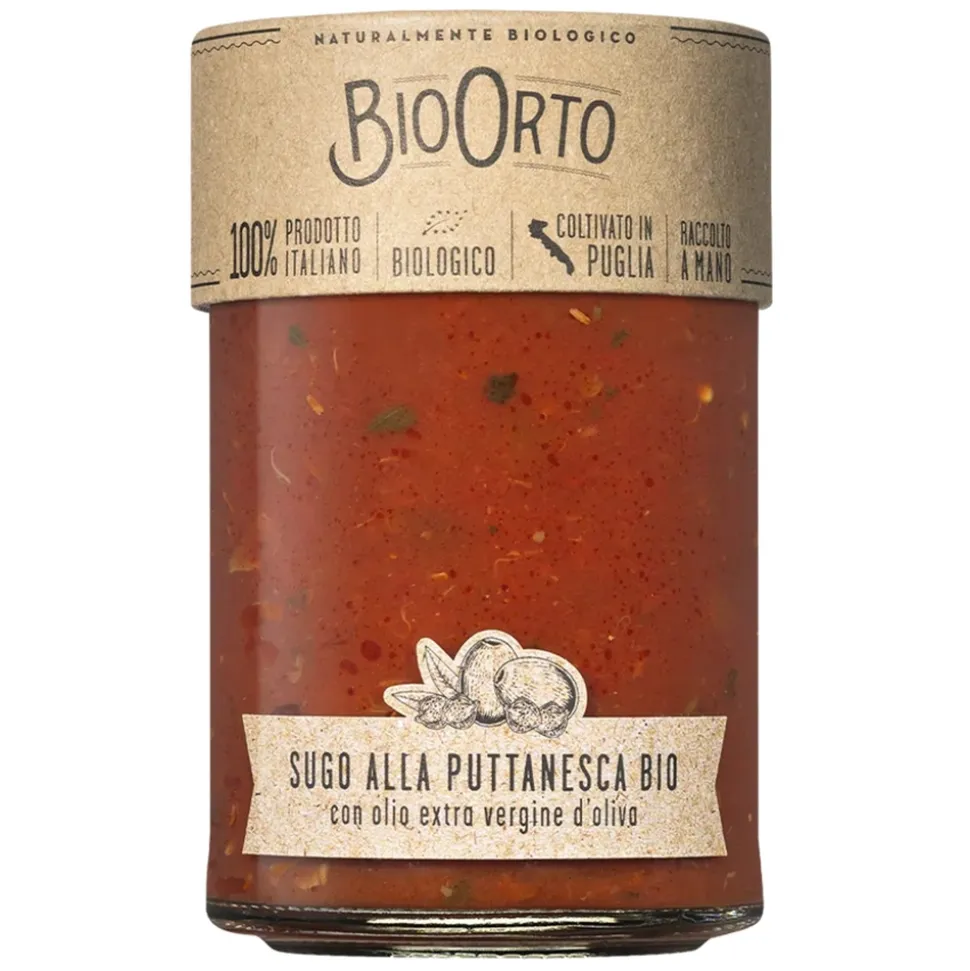 The Bio Orto puttanesca sauce, prepared according to the Italian tradition, combines olives and capers with organic EVO oil, thus creating a condiment with a rich and unique taste made only with fresh and organic ingredients. Bio Orto’s puttanesca sauce is a ready-to-use product and is without preservatives and added sugars.