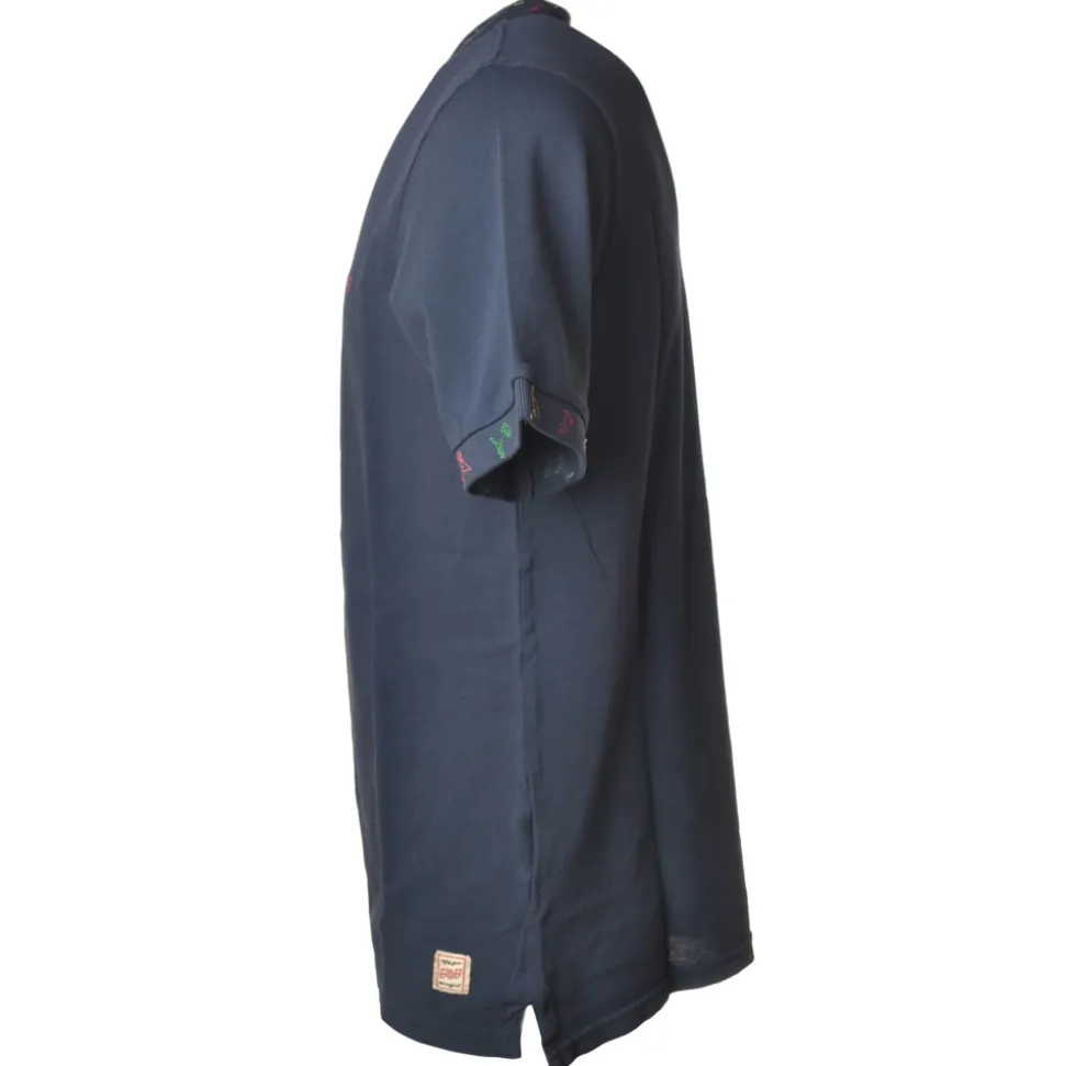 BoB polo shirt, fitted model, short sleeves, with multicolor embroidery detail on the neck and on the edge of the sleeves.