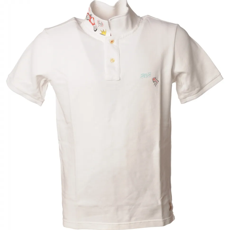 BoB Company – Polo Shirt with Short Sleeves and Print Detail – White – T-Shirt – Made in Italy – Luxury Exclusive Collection
