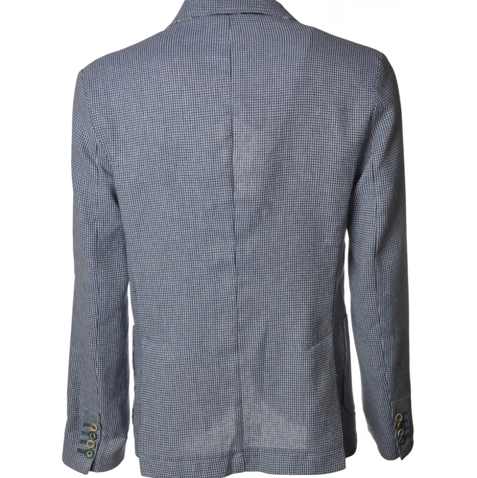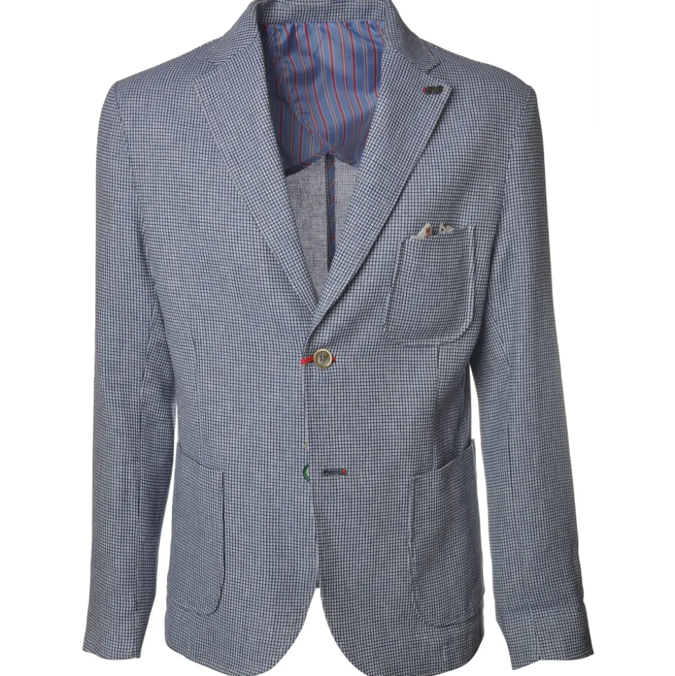 BoB Company – Single-Breasted Jacket in Checkered Pattern – Light-Blue – Jacket – Made in Italy – Luxury Exclusive Collection