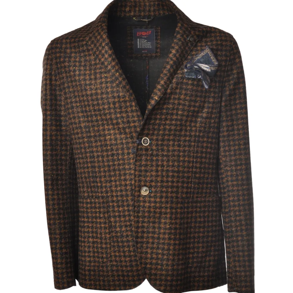 BoB Company – Single-Breasted Jacket in Houndstooth Pattern – Black/Brown – Jacket – Made in Italy – Luxury Exclusive Collection