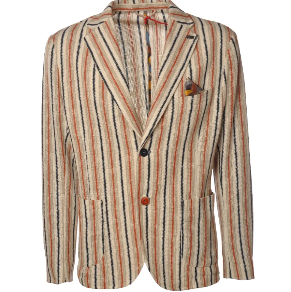 BoB Company – Single-Breasted Jacket in Striped Pattern – Multicolor – Jacket – Made in Italy – Luxury Exclusive Collection