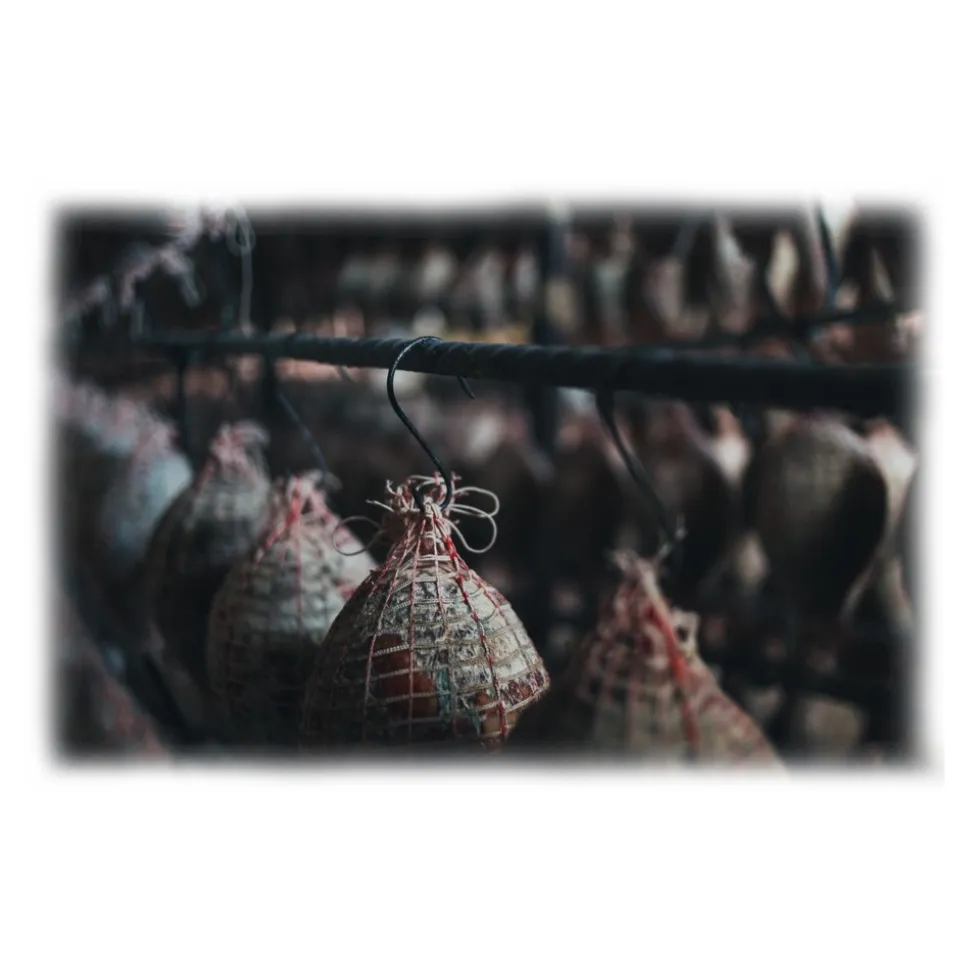 With the best cuts of pork seasoned with salt, sweet and spicy pepper powder, fennel seeds and black pepper, we obtain our artisanal Ventricina. After 24 hours, the meat absorbs all the spices, so we proceed to the casing and the first natural aging for about 90 days between November and February, taking advantage of the Abruzzo hinterland microclimate. Afterwards our butcher masters proceed to the larding, covering Ventricina with a natural layer of lard and allowing it to mature for a further 6 months.