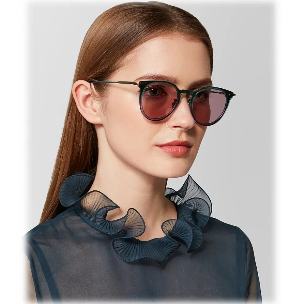 Bottega Veneta – Acetate Round Sunglasses – Green Violet