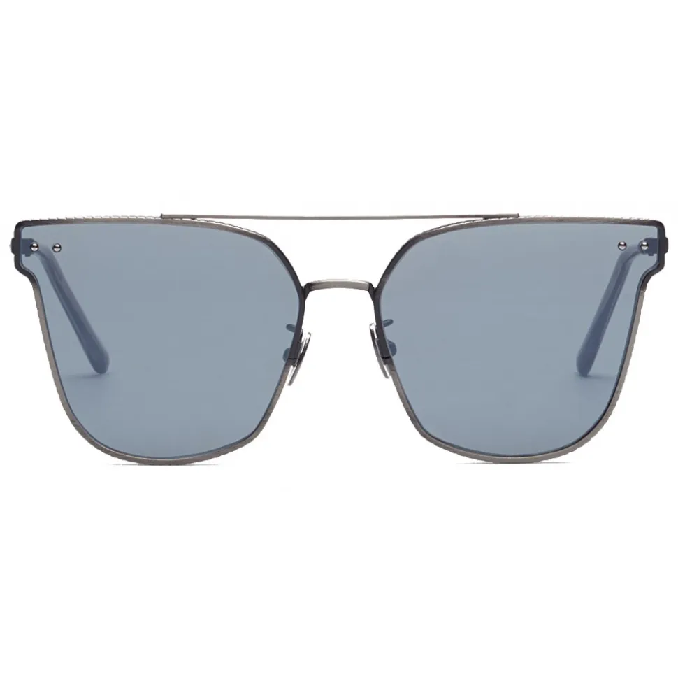 A contemporary reinterpretation of an iconic Bottega Veneta model, these squared sunglasses with silver mirrored lenses have a metal frame with silver-plated finish. Extremely light, the model stands out for its double bridge, customized plates and the characteristic semi-sphere rivets of the Maison.