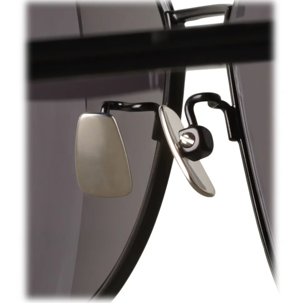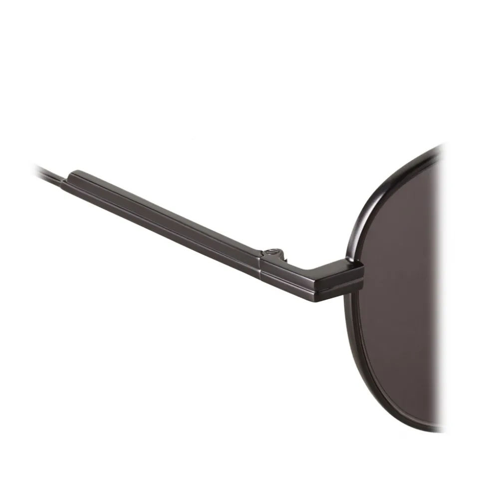 Classic aviator sunglasses. Double deck. Temples with emblematic motif with stripes and embossed logo. Black with Grey Lenses.