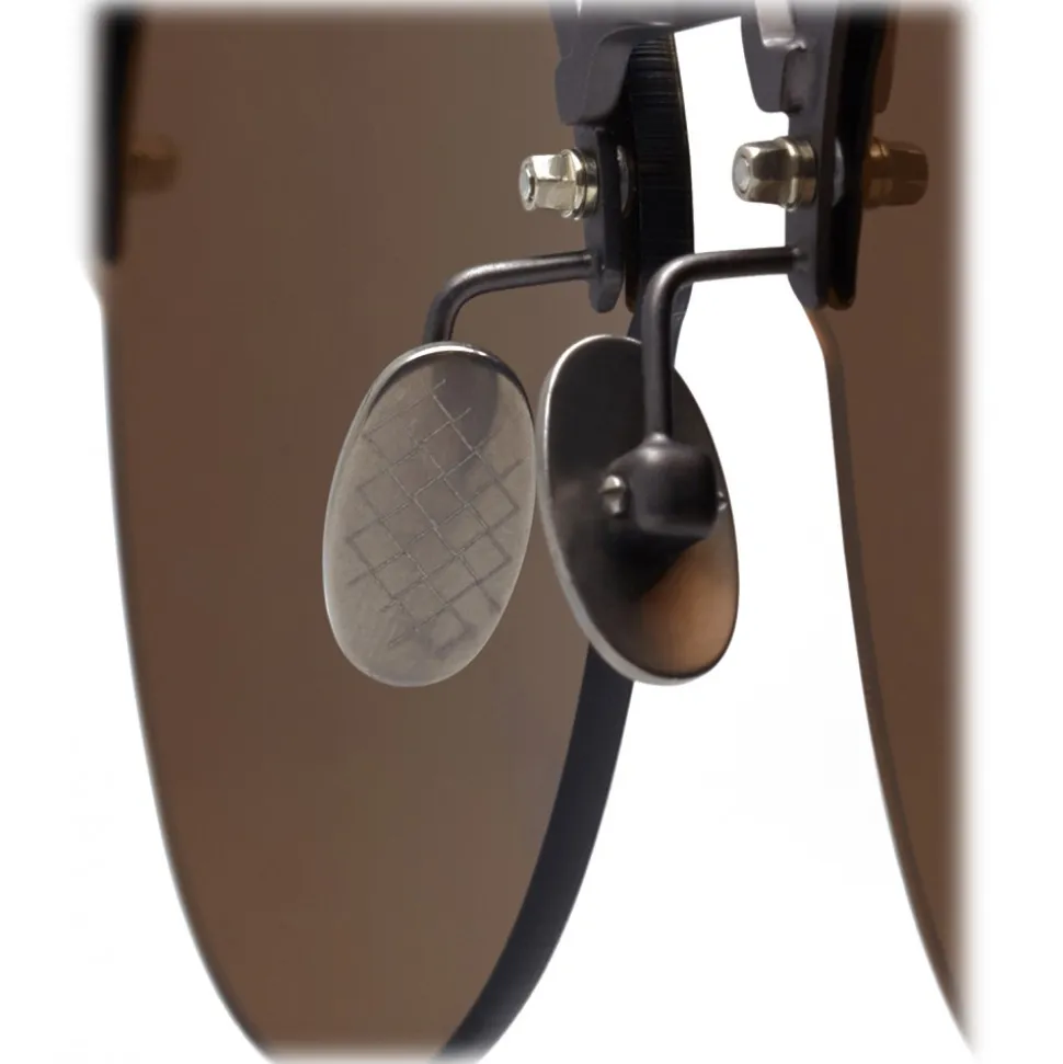 These modern sunglasses are made of refined metal, light but robust. They present hand-decorated lenses with the iconic intertwined details and the exclusive semi-spherical Bottega Veneta rivets applied with precision on the temples. A timeless model with personalized plaques and a comfortable fit.