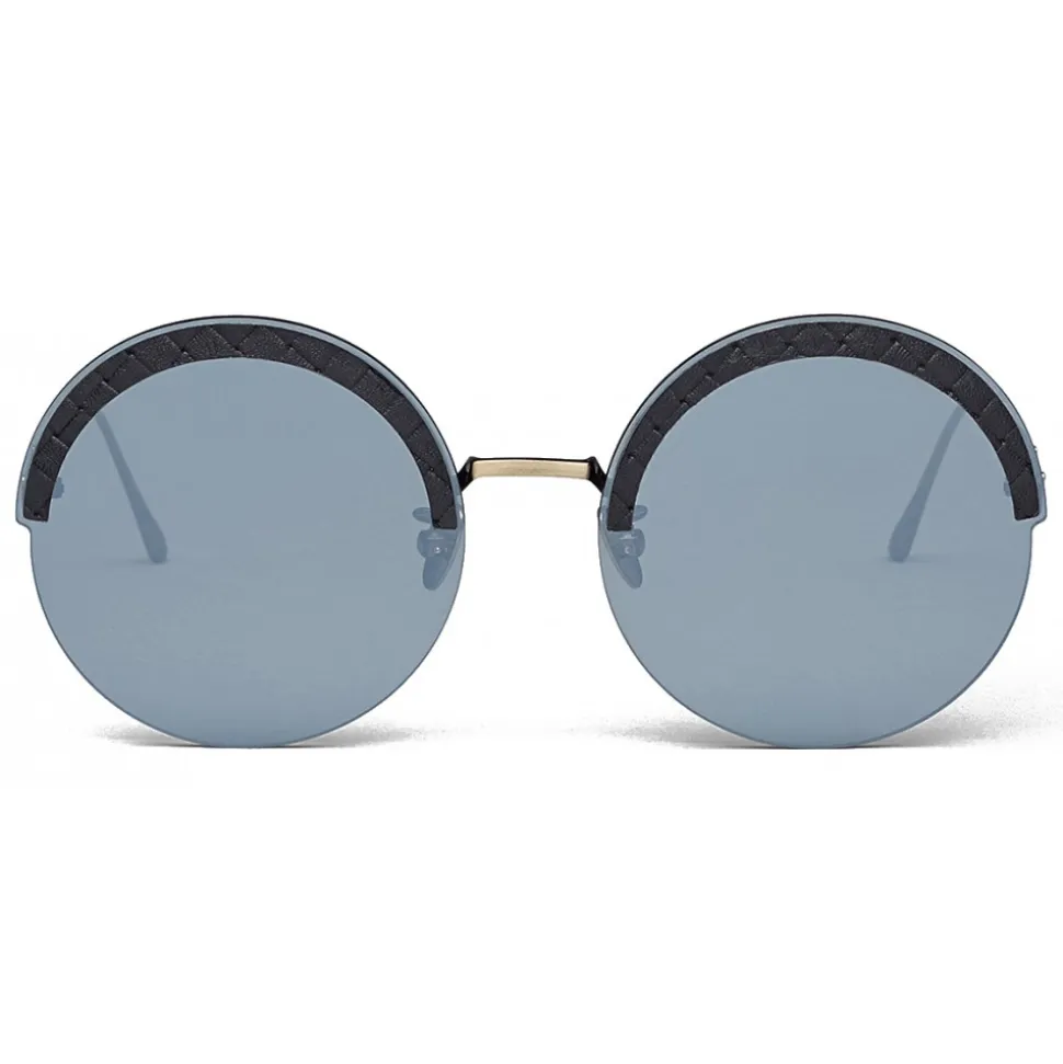 Bottega Veneta – Metal Gold and Leather Round Oversize Sunglasses – Gold Silver