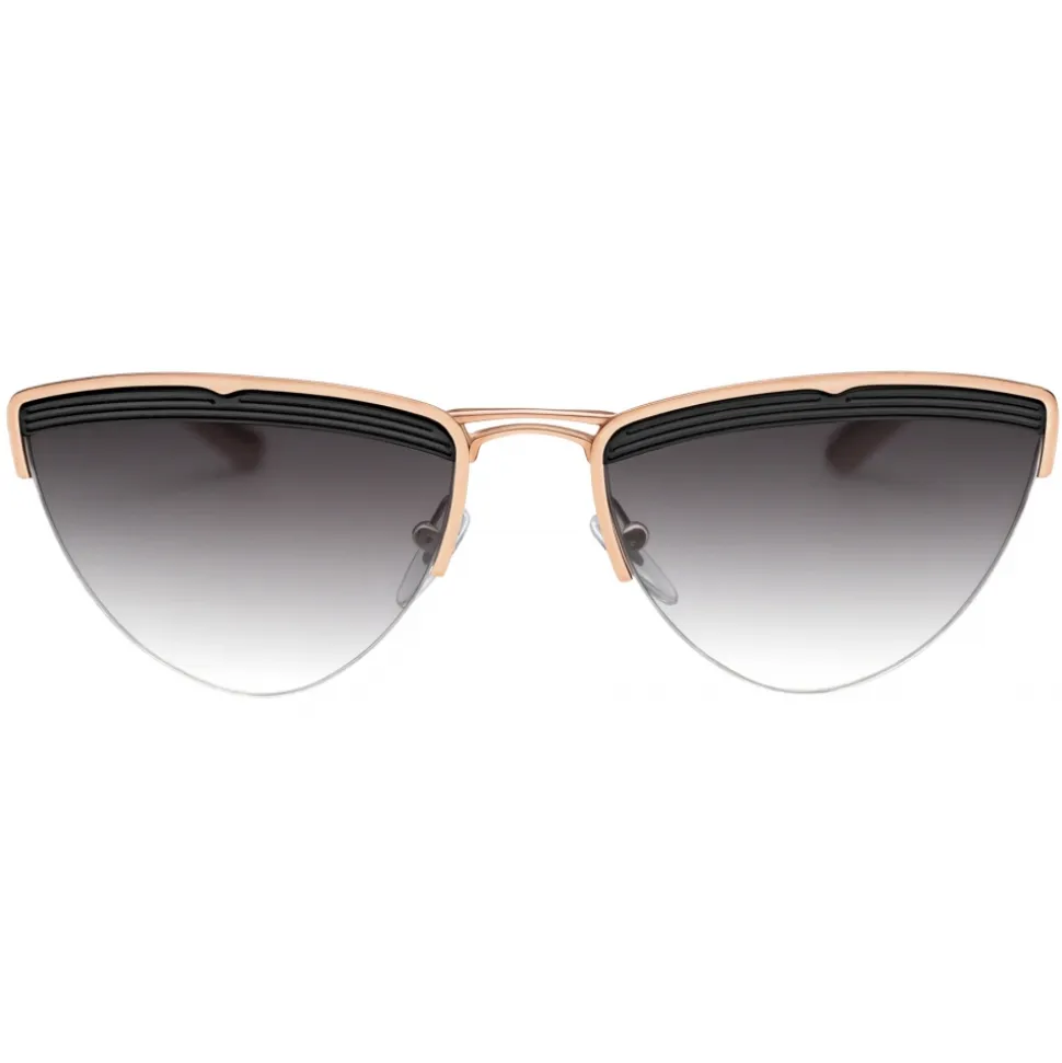 Bvlgari B.zero1 “B.minivibes” metal cat-eye sunglasses with grey gradient lenses. The style features black and pink gold coloured stripe motifs on the front and temples inspired by B.zero1 architectural geometries. A strong sense of design and a creative decomposition of the unmistakable spiral defines a true style map of B.zero1’s boldest statements.