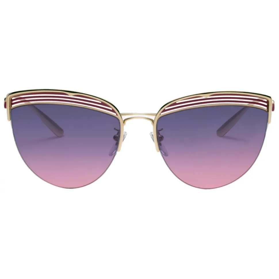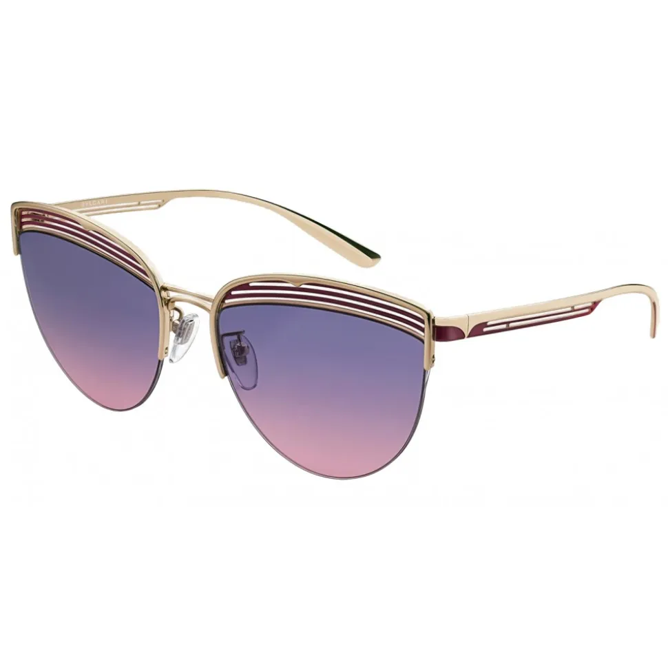 Bulgari B.zero1 “B.purevibes” metal sunglasses with cat-eye shape and semi-rimless frame.