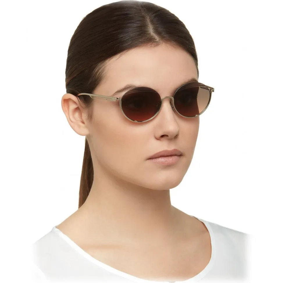 Bulgari B.zero1 “B.purevibes” metal sunglasses with cat-eye shape and semi-rimless frame.