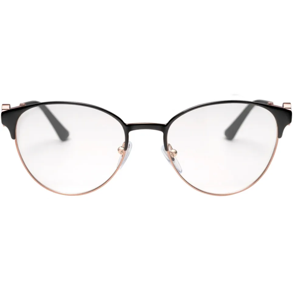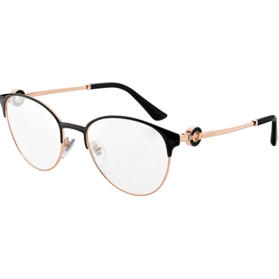 Bvlgari Bvlgari “On-Me” pink gold colour round metal glasses with black profiles. An openwork jewellery-inspired décor with hand-set enamel and crystals adorns the temples.