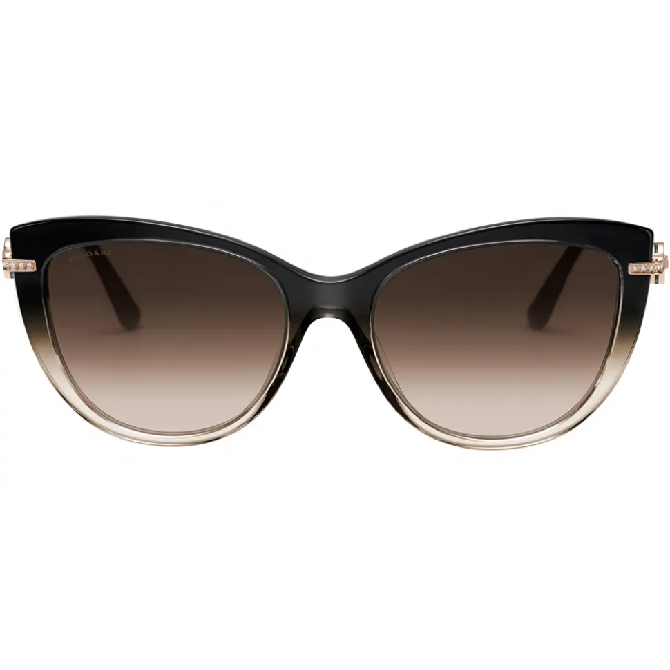 Bvlgari Bvlgari cat-eye acetate sunglasses with metal temples that hold an element of preciousness: a Bvlgari Bvlgari metal décor surrounded by crystals to further enhance the elegance with a hint of allure, in the very Bvlgari style.