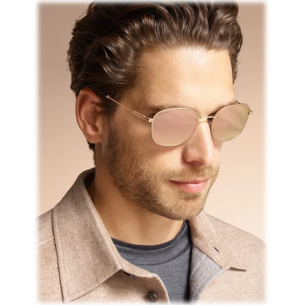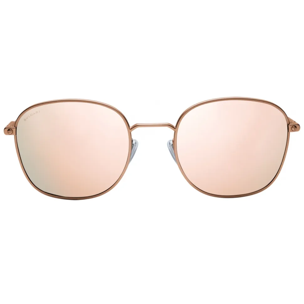 Diagono round metal sunglasses with pink mirrored polarised lenses. The distinctive tubular hinge with Bvlgari logo in matte pink gold-tone characterises the flexible, slender metal temples. A must have to complete a sporty-chic look.