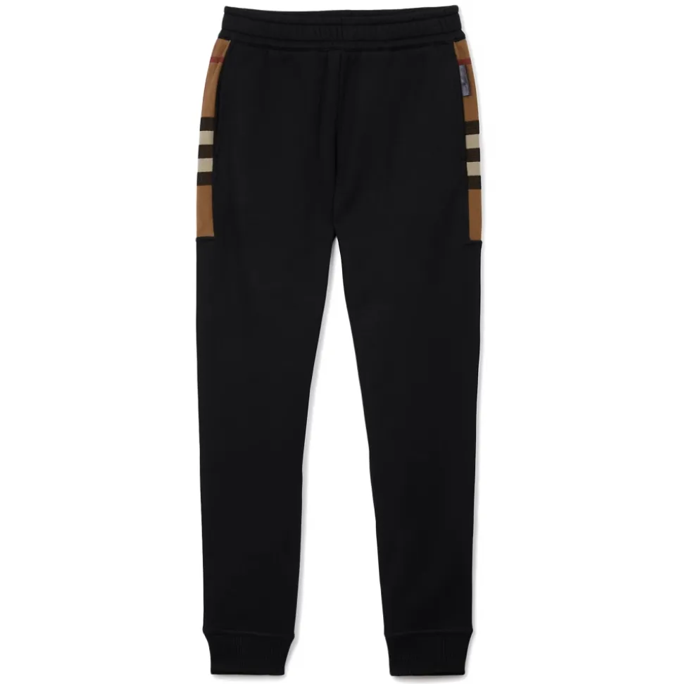 Burberry – Check Panel Cotton Blend Jogging Pants – Black / Birch Brown – Exclusive Burberry Collection