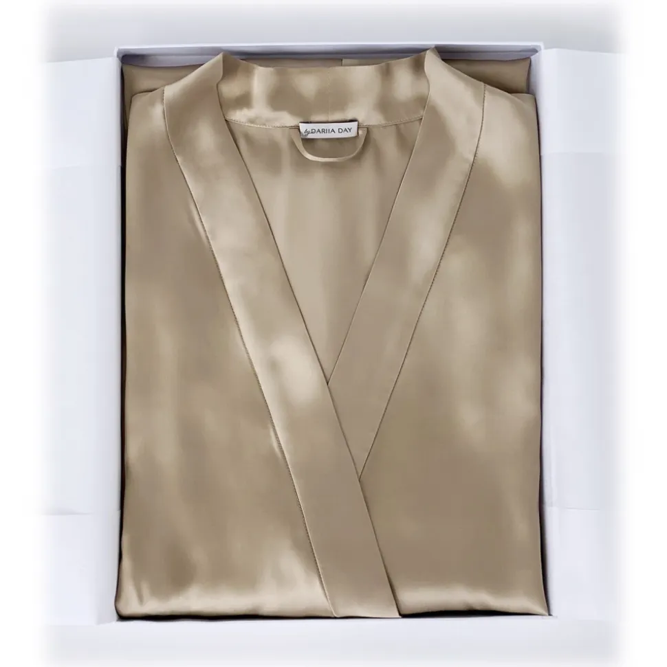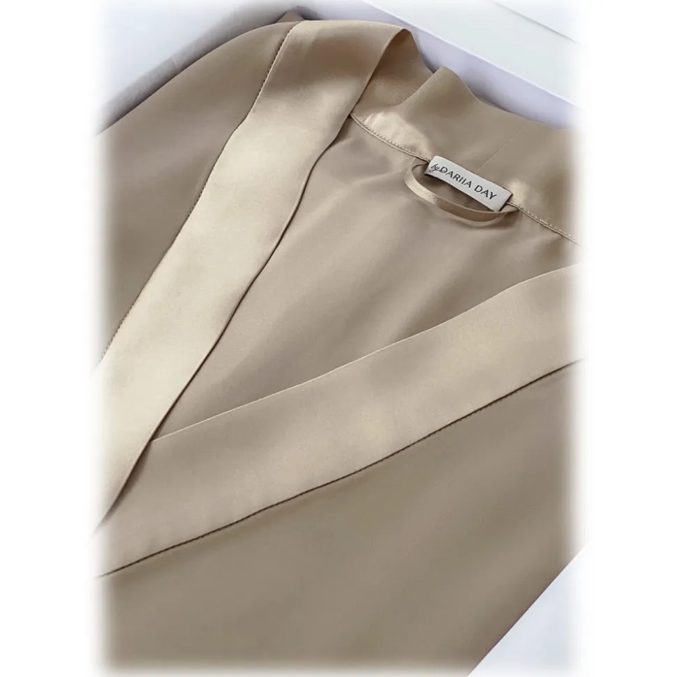 by Dariia Day – Long Silk Robe – French Beige – Fashion – New Collection – Mulberry Silk – Artisan Silk Robe – Luxury