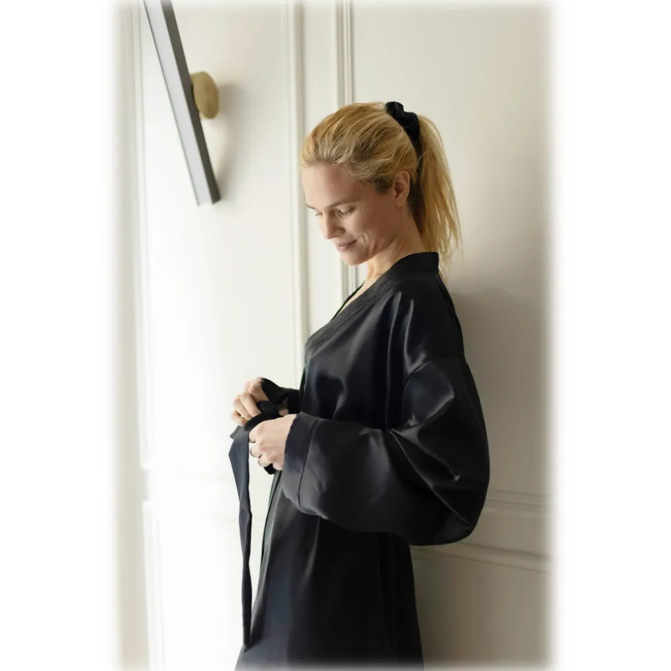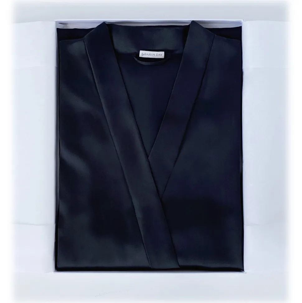 by Dariia Day – Long Silk Robe – Midnight Black – Fashion – New Collection – Mulberry Silk – Artisan Silk Robe – Luxury