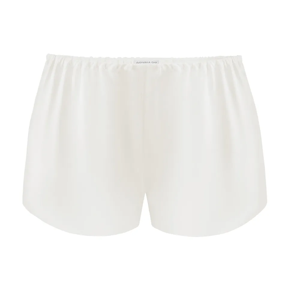 by Dariia Day – Silk Shorts – Powder White – Fashion – New Collection – Mulberry Silk – Artisan Silk Shorts – Luxury