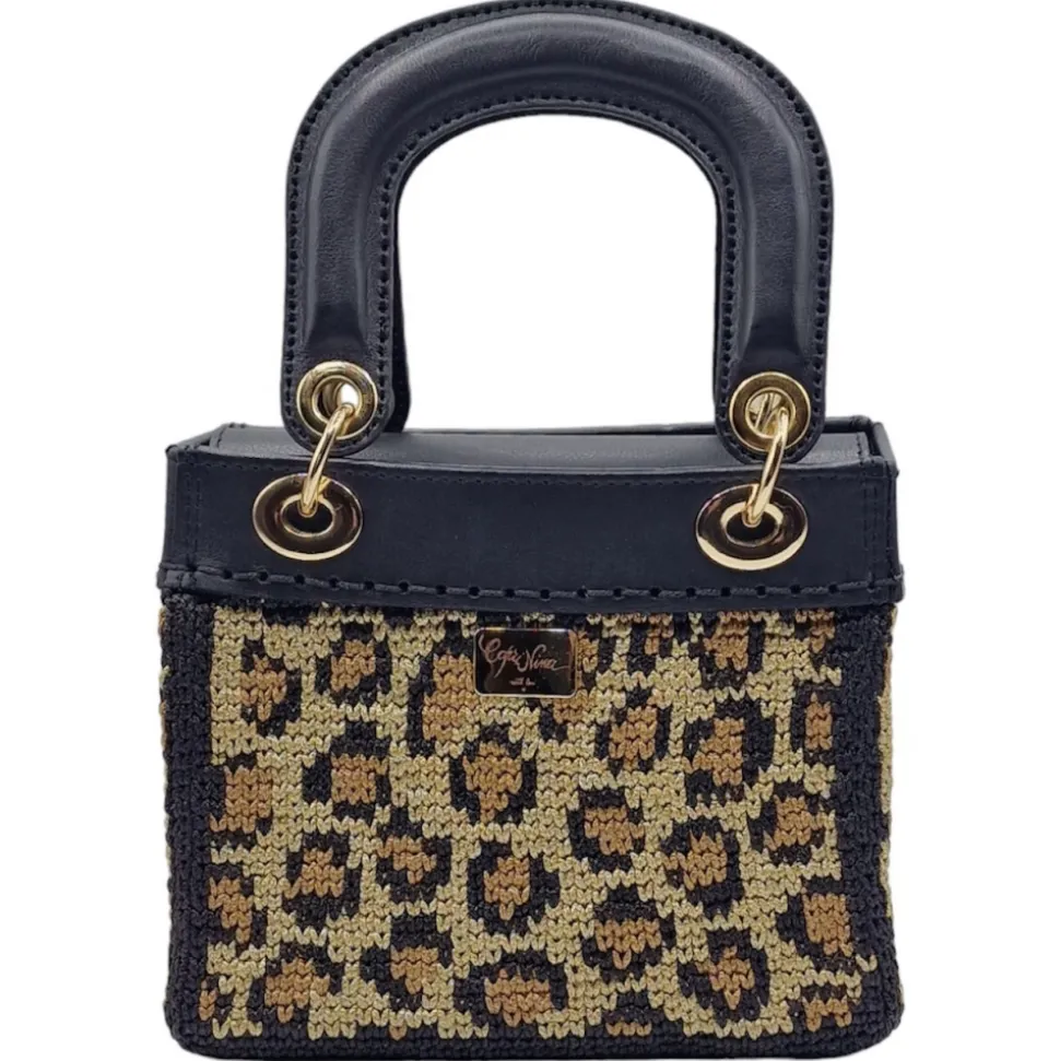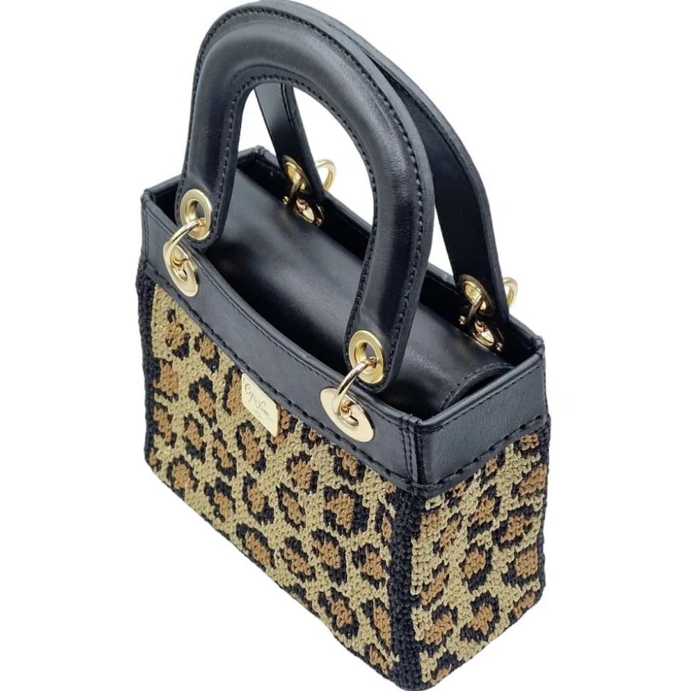 CapriNina – CapriDì Mini – Fine Bag Handmade in Capri – Black Leopard – Handmade in Italy – Exclusive Luxury