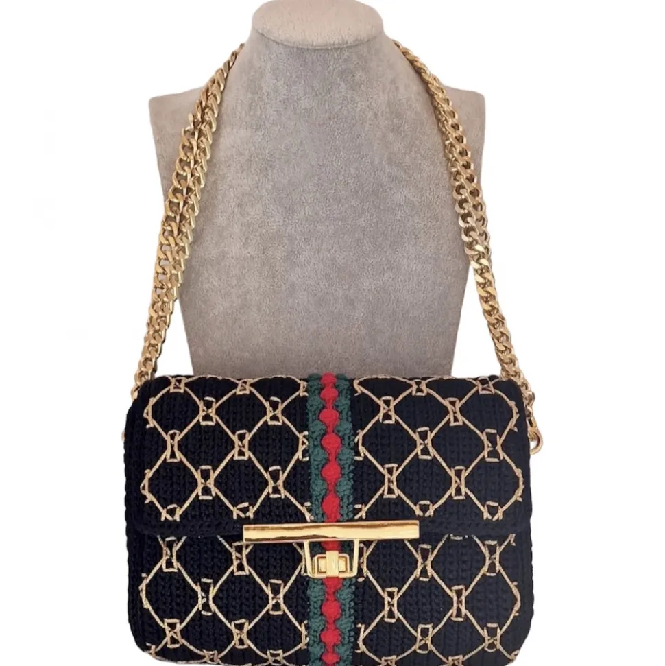 The CapriGu is a unique work of art, crafted from high-quality materials. The delicate and precise crochet gives the bag a soft and sturdy texture, while the embroidery work adds a touch of elegance and sophistication. The turn-lock closure, aside from its functionality, is a stylish detail that makes the bag even more exquisite. The adjustable chain provides the necessary versatility for the bag to adapt to any occasion.