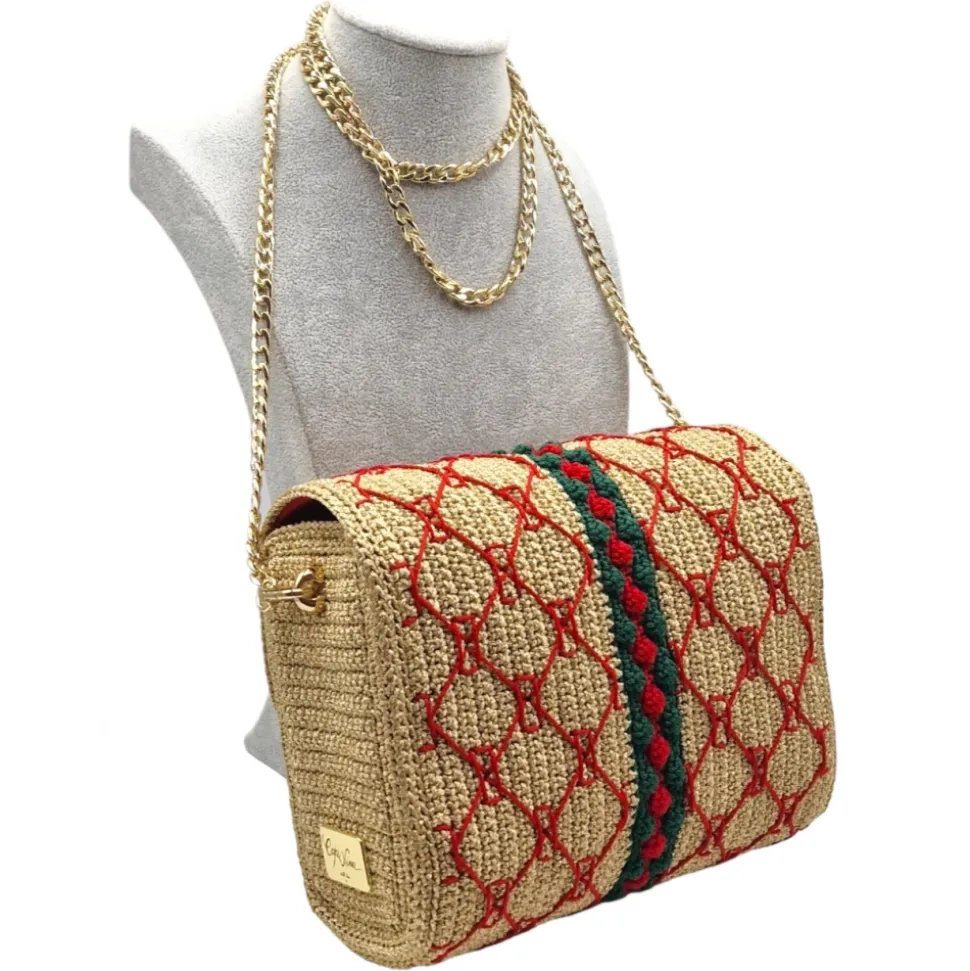 The CapriGu is a unique work of art, crafted from high-quality materials. The delicate and precise crochet gives the bag a soft and sturdy texture, while the embroidery work adds a touch of elegance and sophistication. The turn-lock closure, aside from its functionality, is a stylish detail that makes the bag even more exquisite. The adjustable chain provides the necessary versatility for the bag to adapt to any occasion.