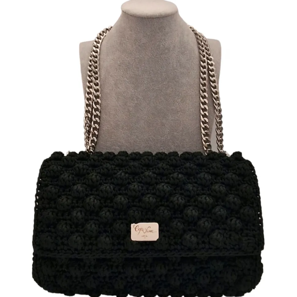 CapriNina – Ninetta Versy – Fine Bag Handmade in Capri – Black Silver – Handmade in Italy – Exclusive Luxury