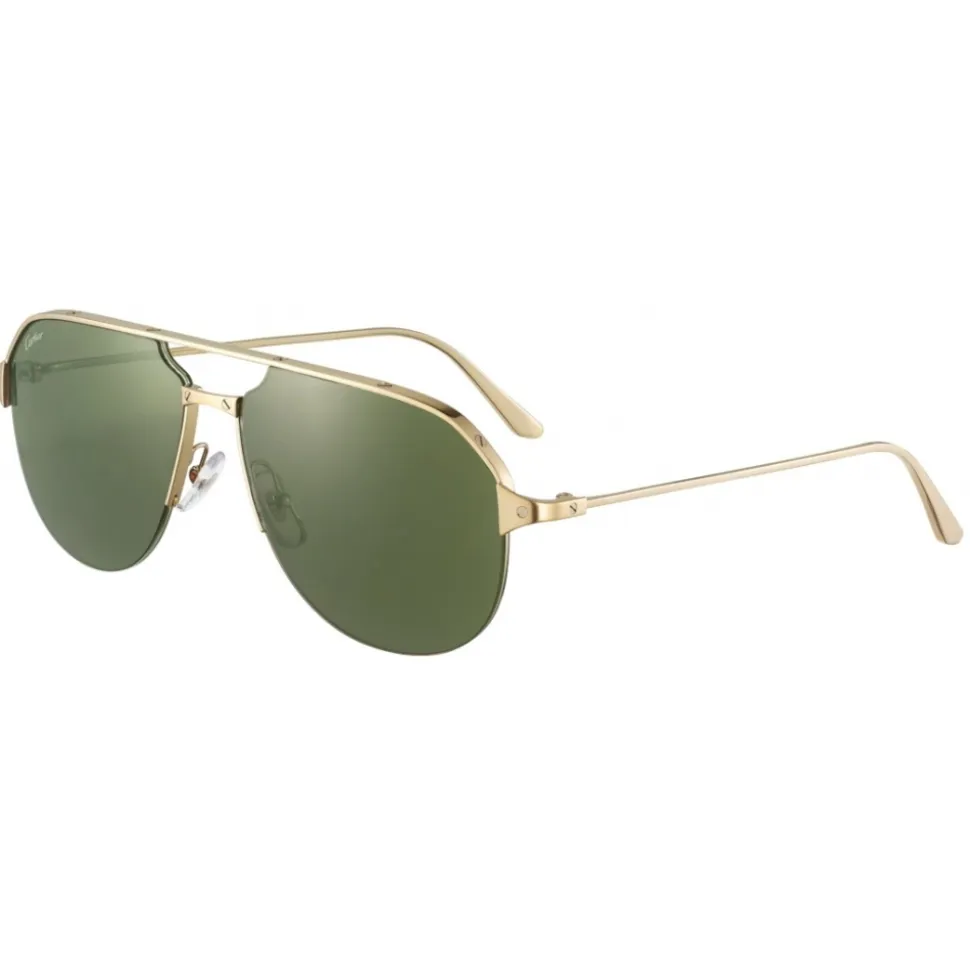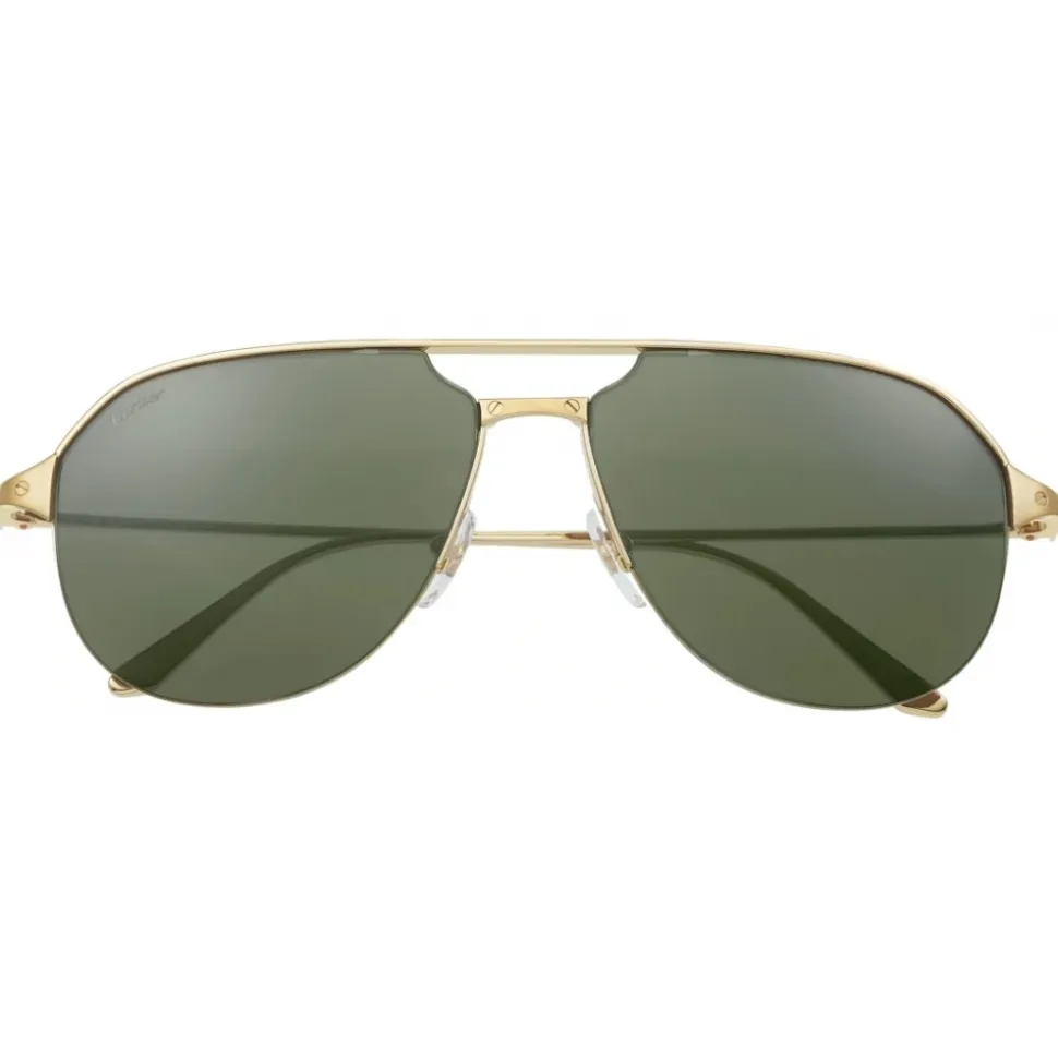 Santos de Cartier sunglasses in smooth and brushed golden-finish metal, golden-finish metal screws, pilot shape and green lenses.