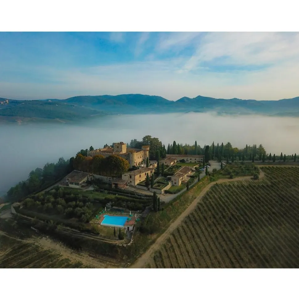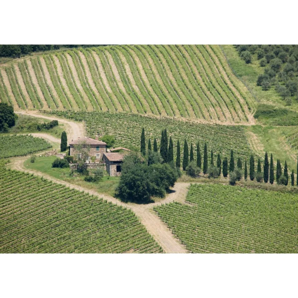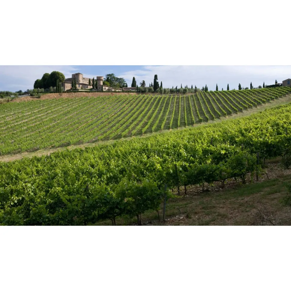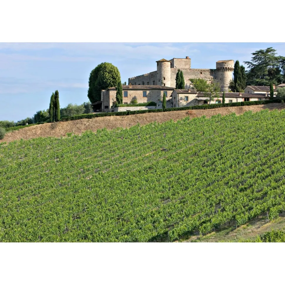 The land of Castello di Meleto extend around the medieval town for about 2,470 acres: of these 300 are reserved for growing grapes. Sangiovese is the main varietal used in the production of the Chianti Classico DOCG.
