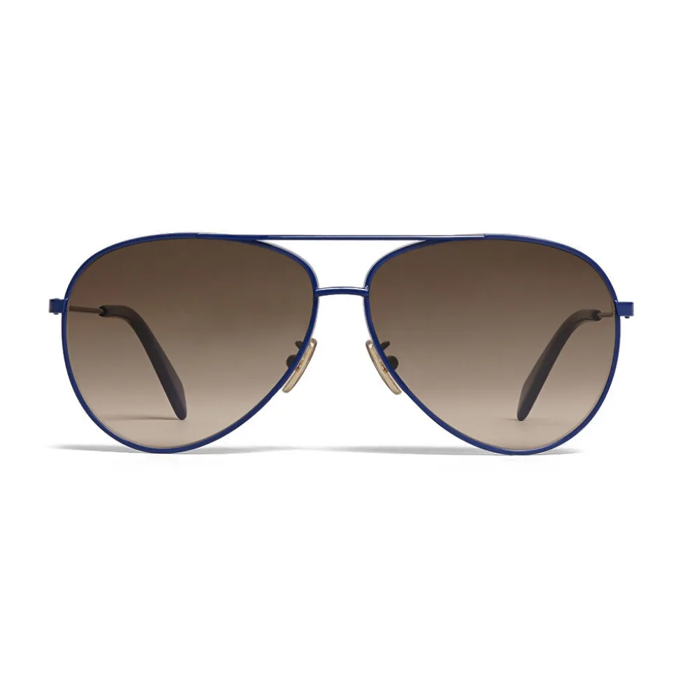 Navigator sunglasses with metal frames and a metallic double bridge.