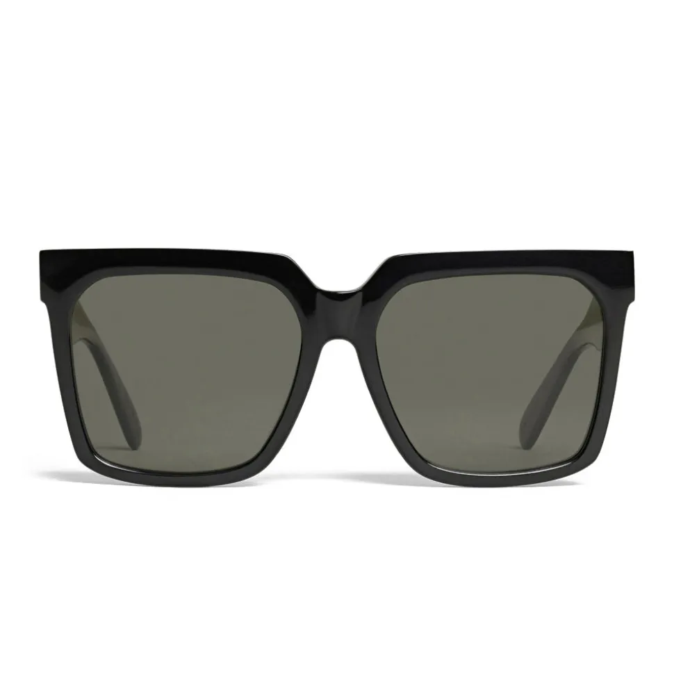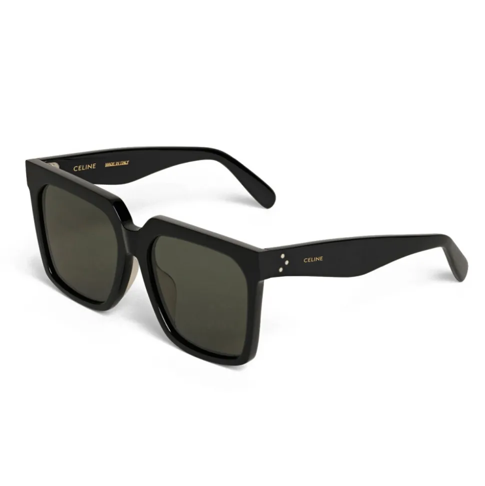 Oversize sunglasses with thick acetate frames and metallic studs.