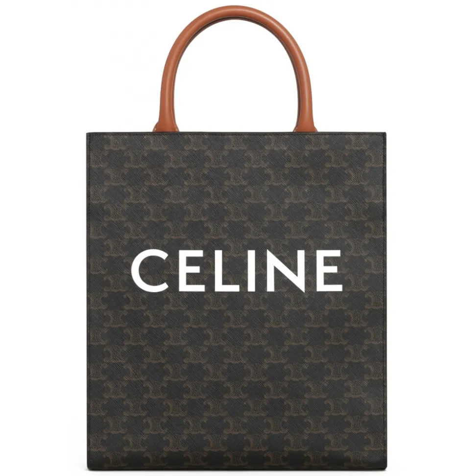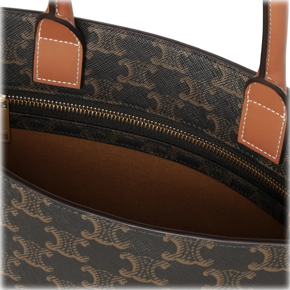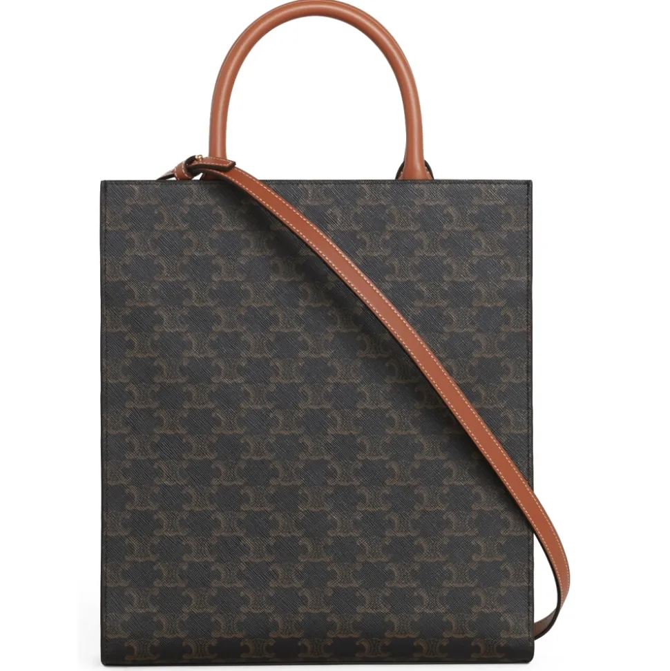 Céline – Small Cabas Vertical in Triomphe Canvas and Calfskin – Tan – Bag – Céline Exclusive Collection
