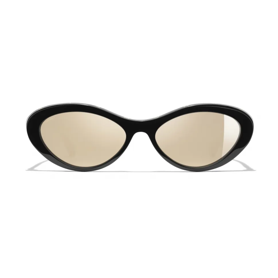 Chanel – Oval Sunglasses – Black Gold Mirror – Chanel Eyewear