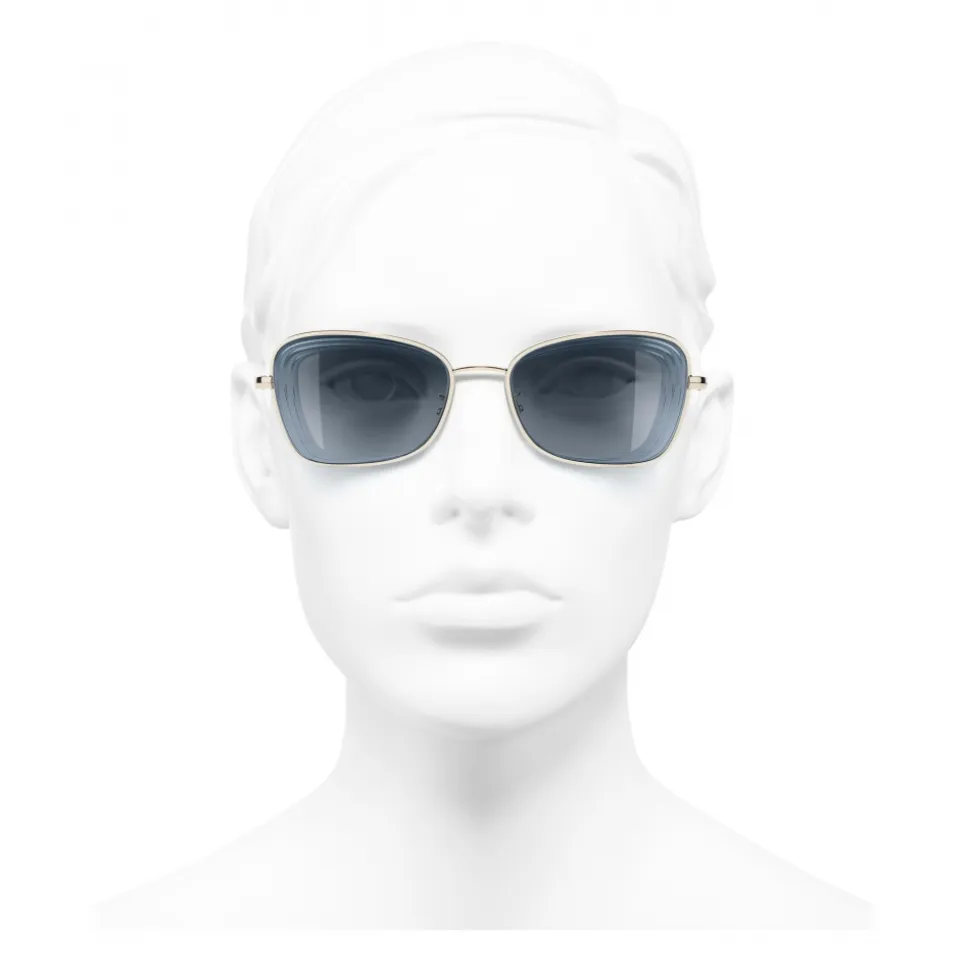 Chanel – Rectangle Sunglasses – Gold Light Blue – Chanel Eyewear