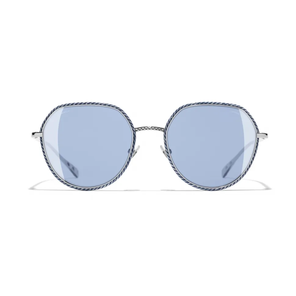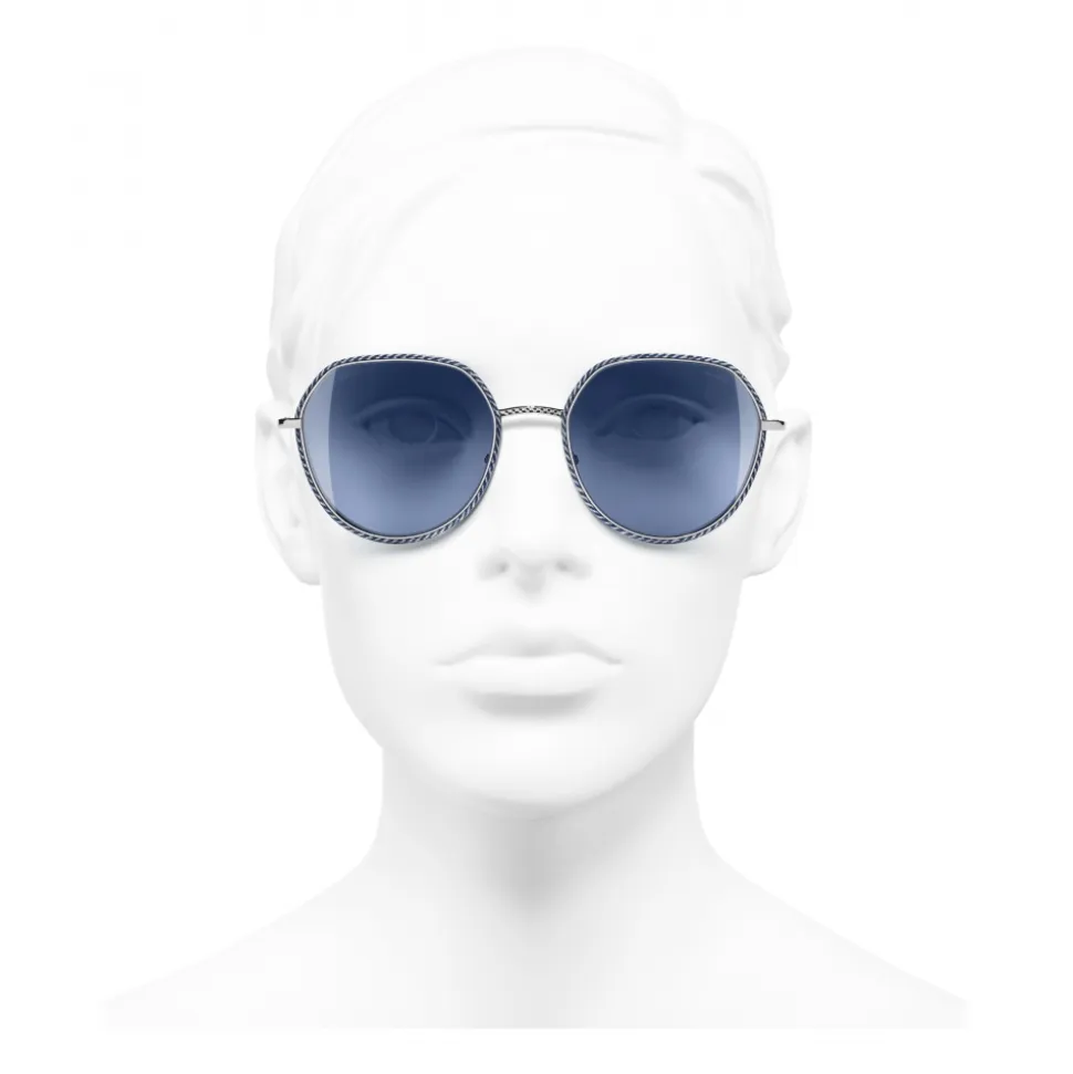 Chanel – Round Sunglasses – Silver Blue – Chanel Eyewear