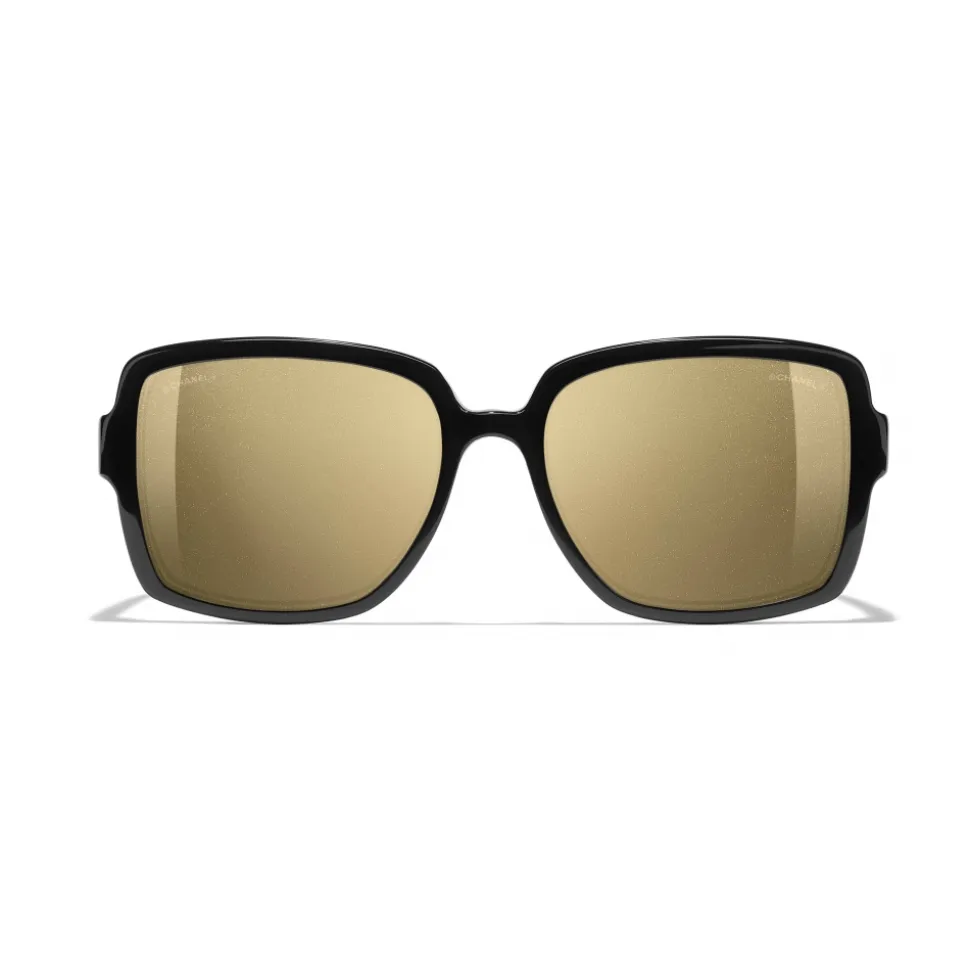 Chanel – Square Sunglasses – Black Gold Glitter – Chanel Eyewear