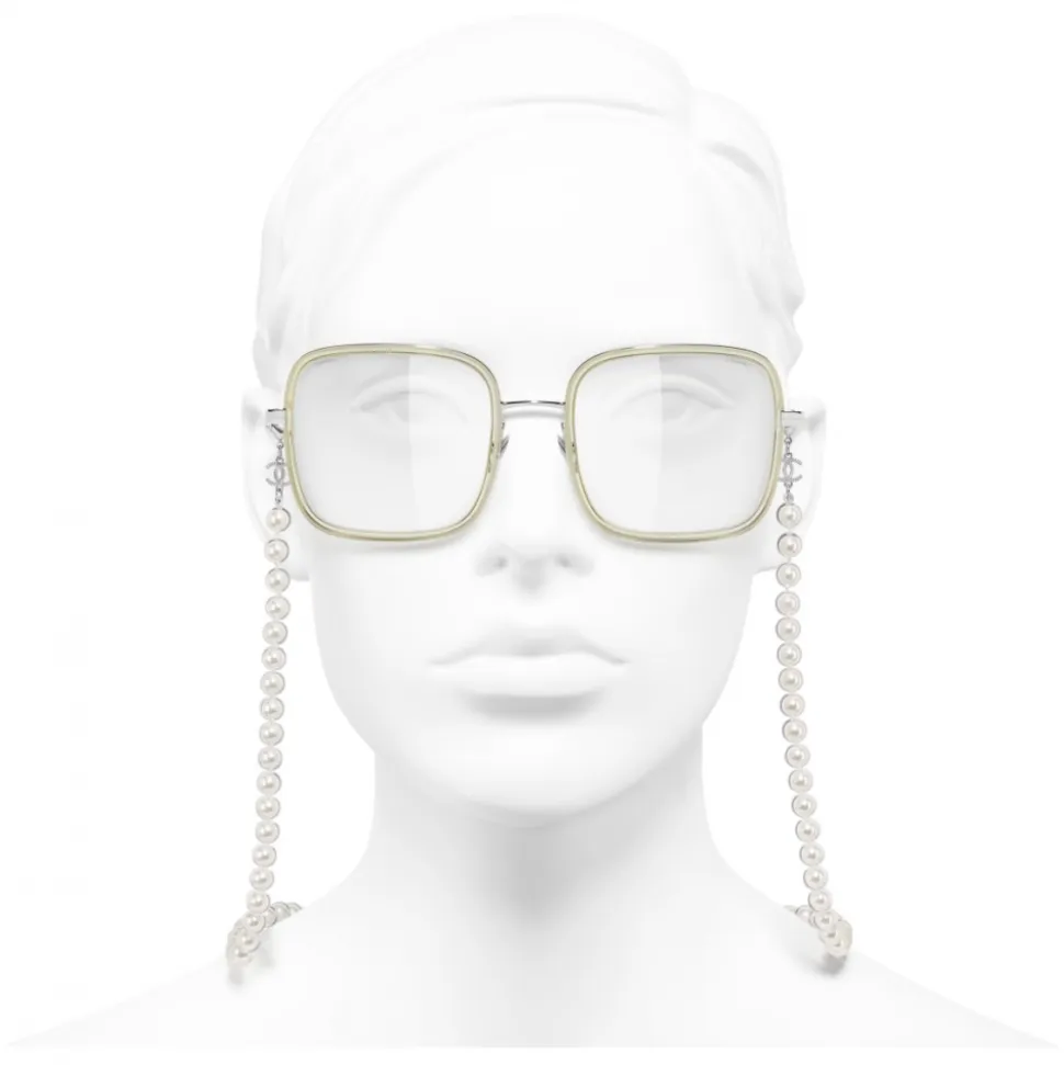 Chanel – Square Sunglasses – Silver Beige Transparent – Chanel Eyewear