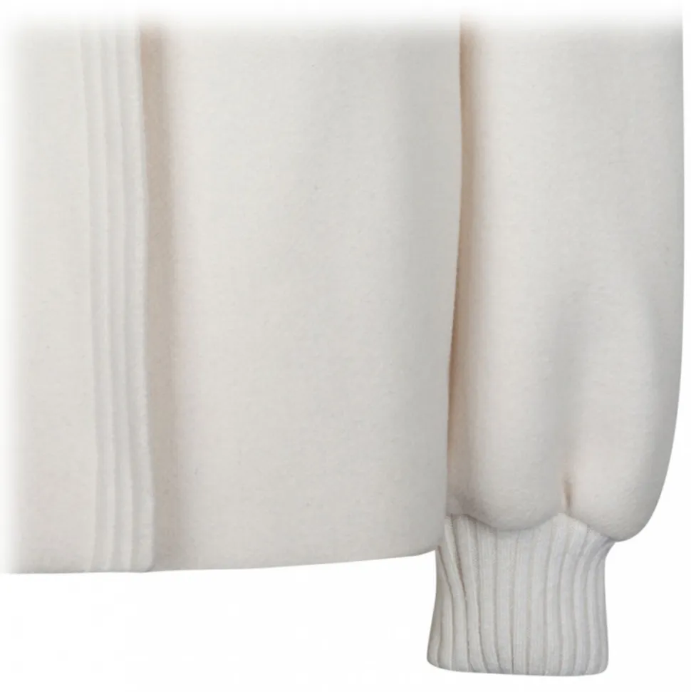 Chloè Cream Short Coat. Cream white round wrap silhouette secured by a Gold jewel button on the neck, which gives a precious detail to this comfortable and easy to match outerwear.