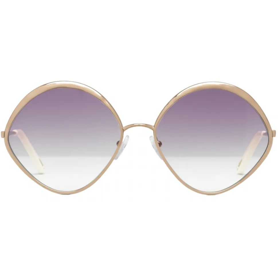 The iconic shaded palette of the Maison gives a touch of freshness to this model with an airy oversized round shape. The temple ends of these women’s sunglasses feature the characteristic Chloé drop-shaped opening, compatible with eyewear jewelry.